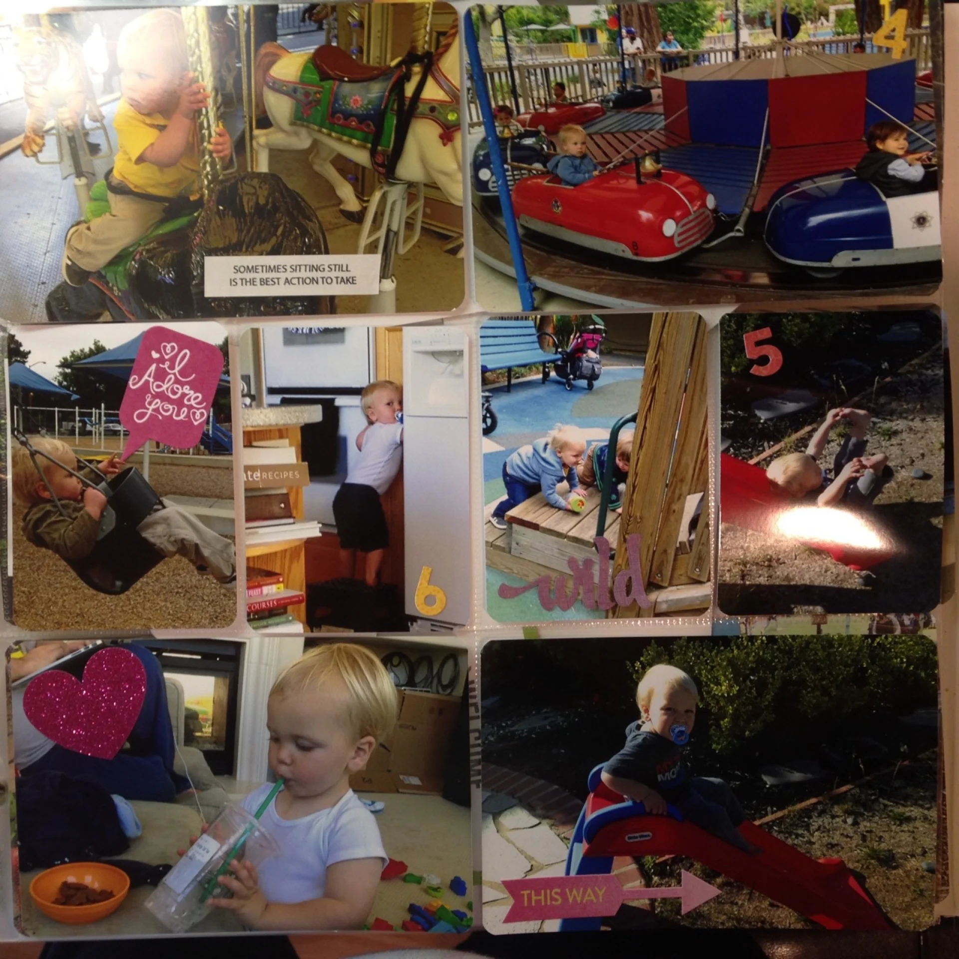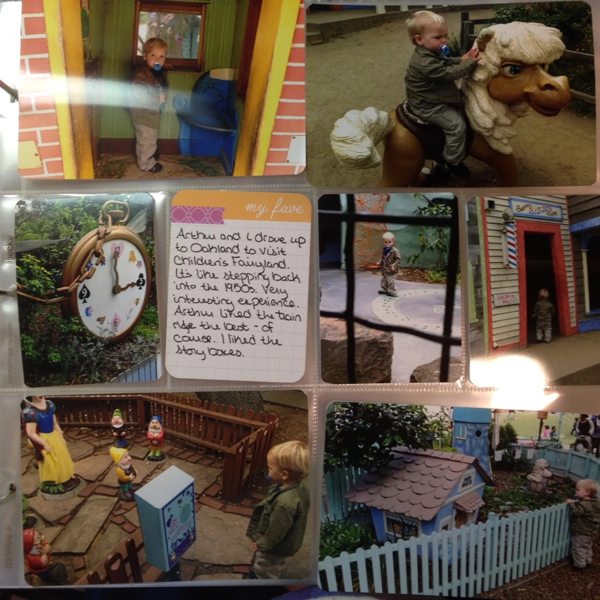 The last page of May features our first visit to Children's Fairyland in Oakland. A very strange place, but it was a fun morning. I decided to forego an embellishments and just add a journaling card.