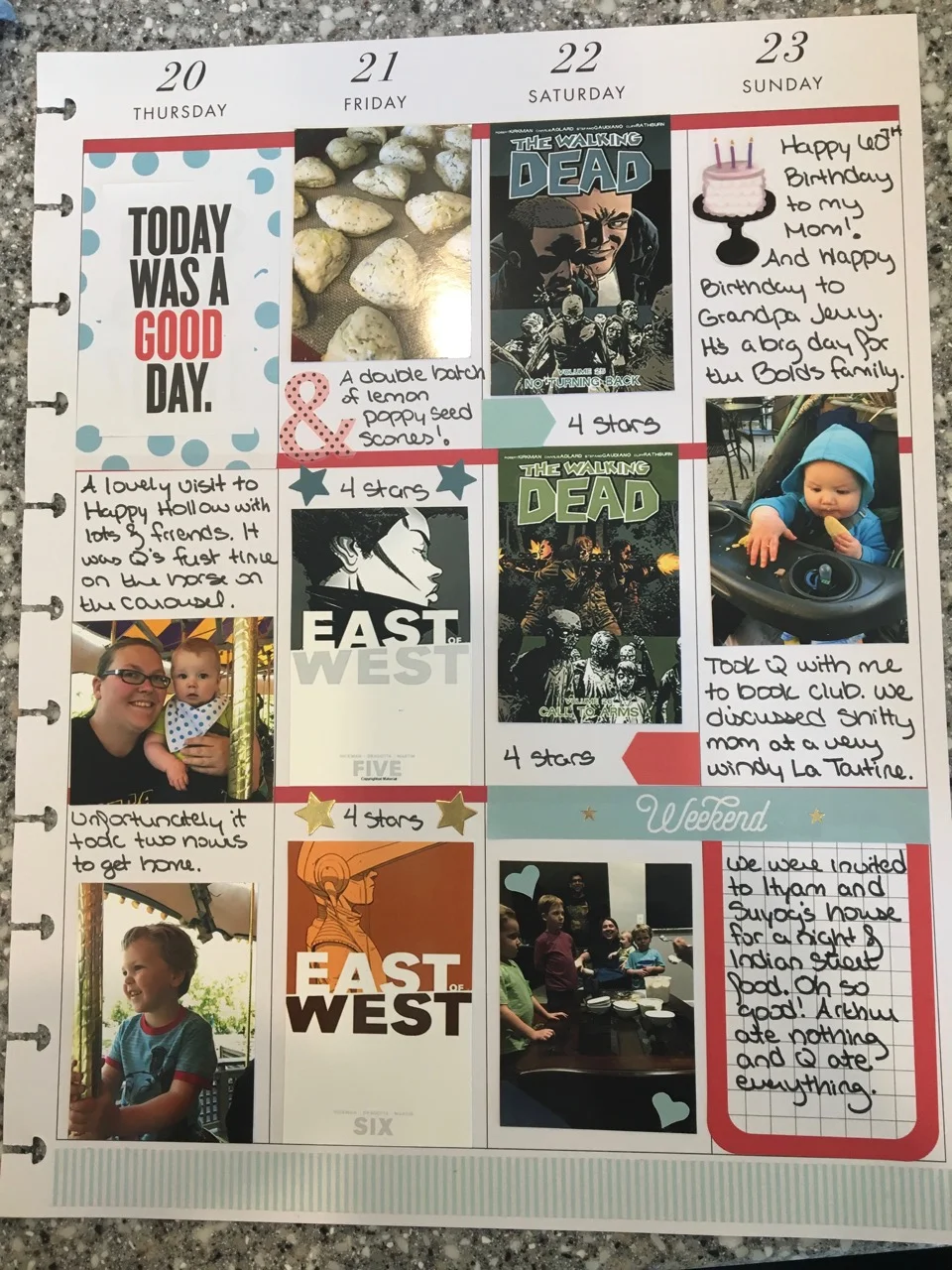While including lots of pictures (of course!), I tried to write more stories. I even played around with the columns to fit in stories and pictures I wanted. The best example of this is the last weekend of the month when I had SU bingo during the day and a big live show at night on Saturday. This was the month that I decided color schemes didn't really matter and I started decorated with what called to me.