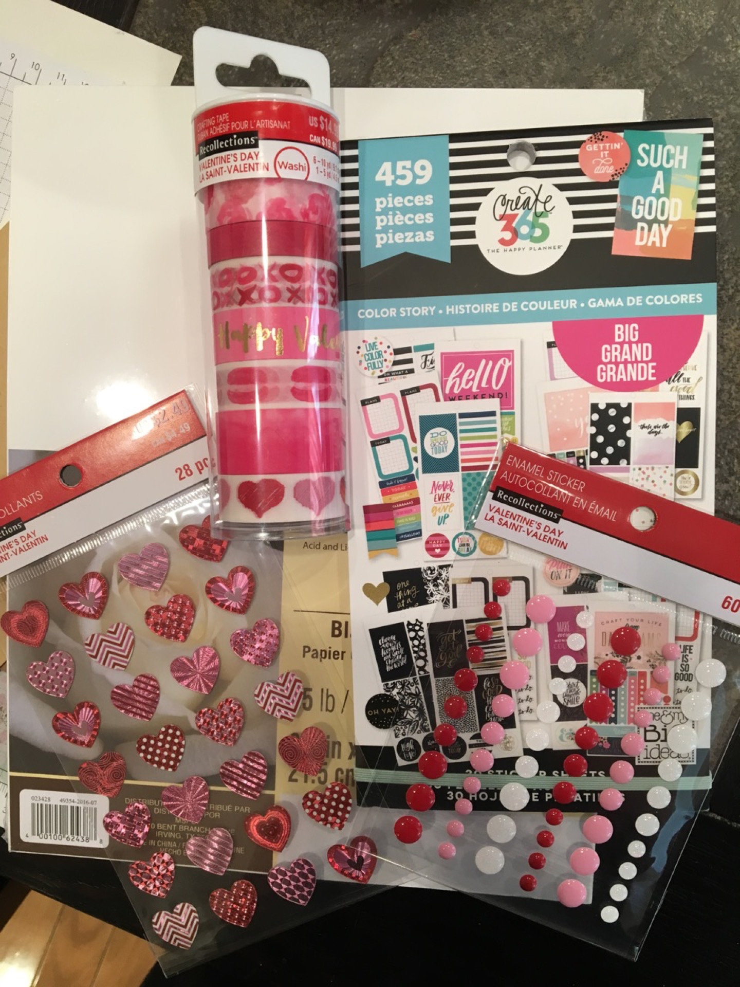 Popped into Michael's to get the Color Story pack for my memory planner. The Valentine's Day stuff was all 40% and I had an extra 25% off everything coupon. I couldn't resist this gorgeous washi tape and stickers. And I grabbed one more pack of white cardstock.