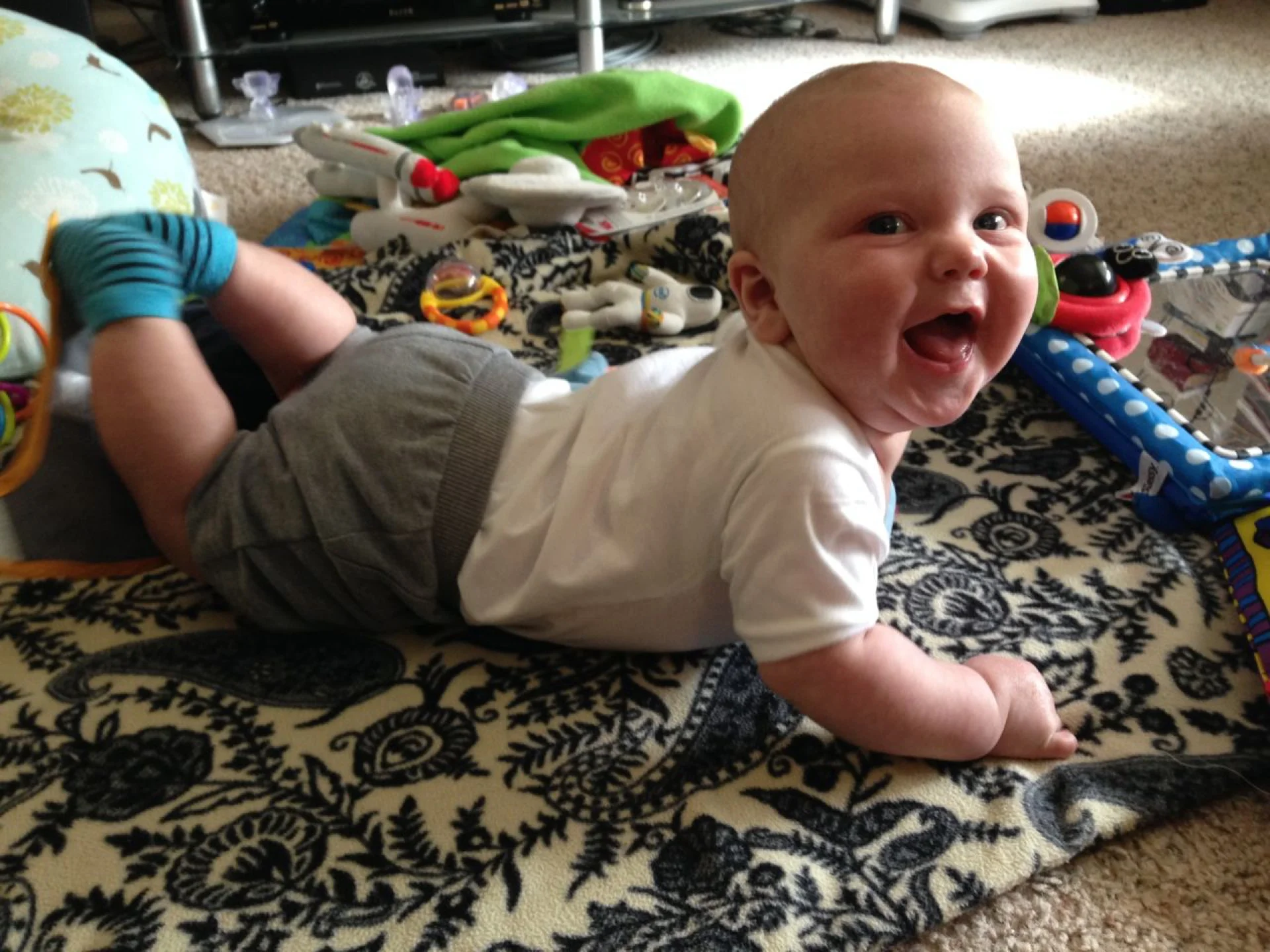 Picture: Happy baby from this week... He wasn't like this all week so I treasured the happy moments.