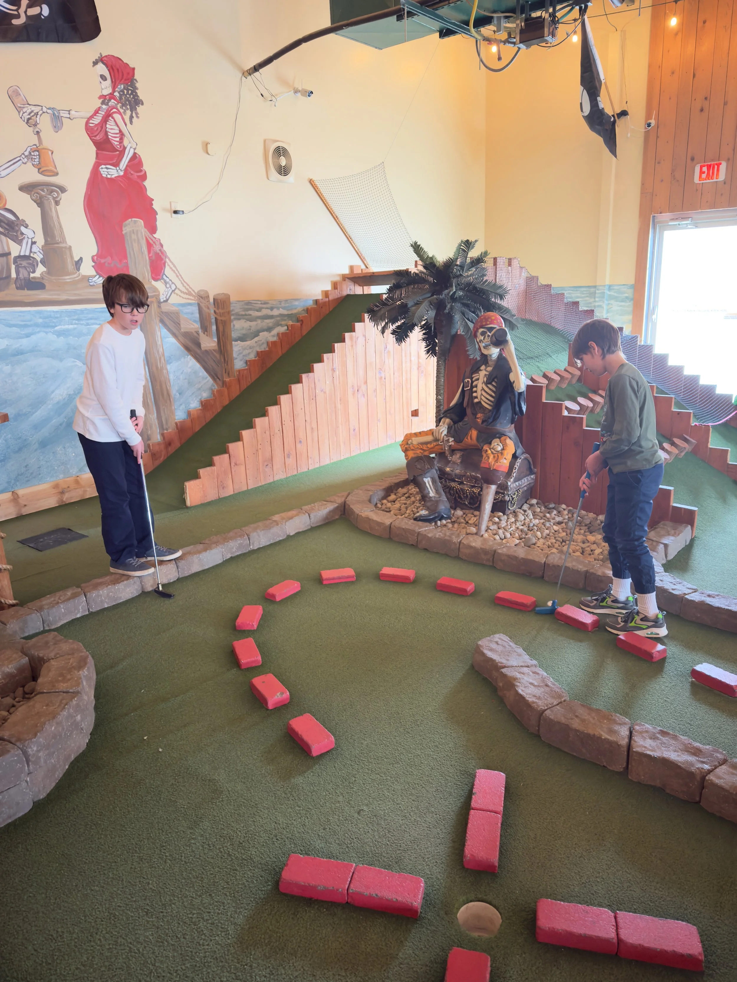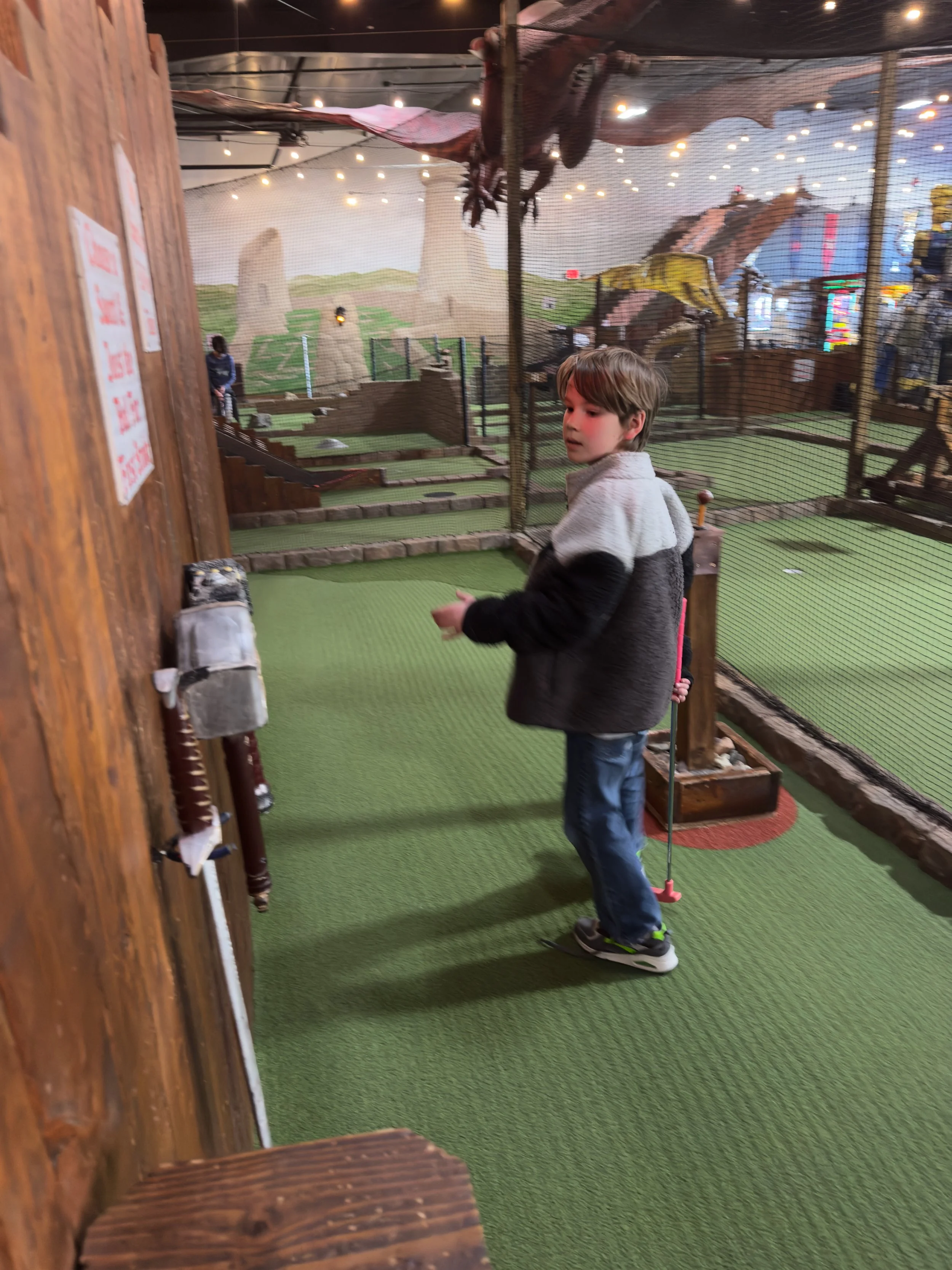 We had a few activities these two weeks including a random park playdate (it was almost 70 degrees), curriculum planning (more for me, but the boys hung out with their friends), Joslyn Art Explorers, Medieval Putt, Prehistoric Putt, and Lost in Fun. I wanted to use the rest of our Get Out Pass before it renewed on the 15th so we managed to sneak in a few more things.