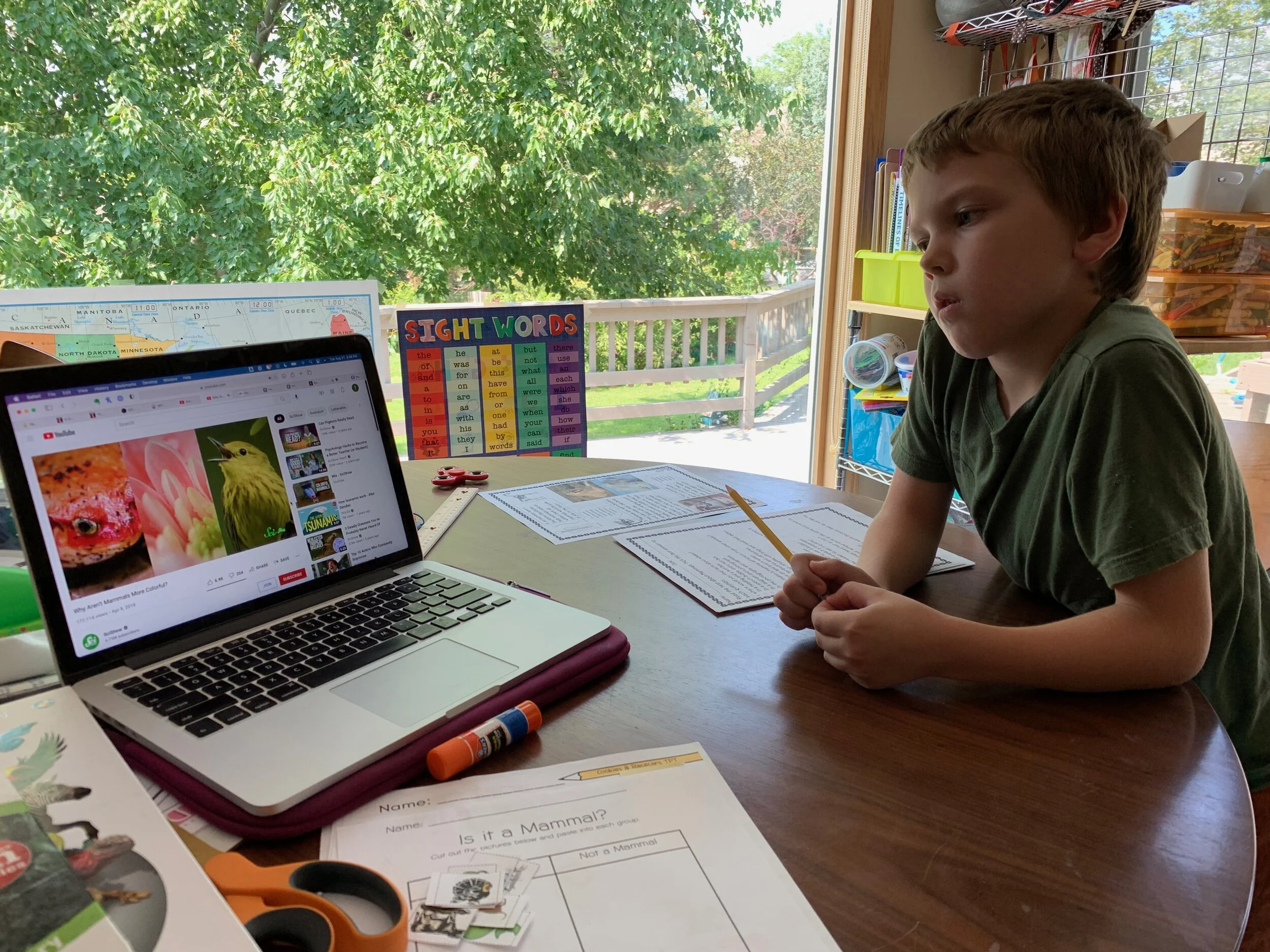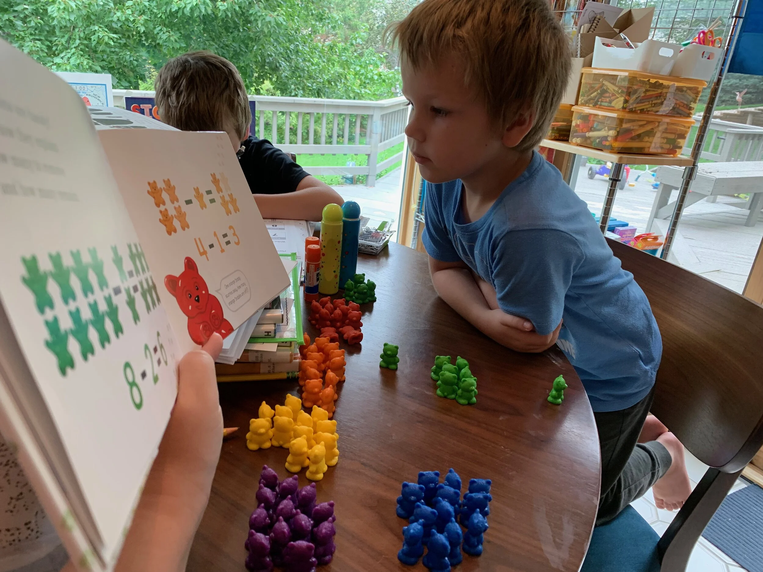 I have scheduled at least four 1-hour time blocks for one-on-one time with Quentin. I bought Blossom and Root’s Early Years Volume 2 curriculum to use as our base. I love the variety of activities and some of the bigger projects included. For ELA, we covered the letters A through E. We covered counting and some basic addition for math. Q also demanded to do math on the computer so we completed a few unit in Khan Academy.